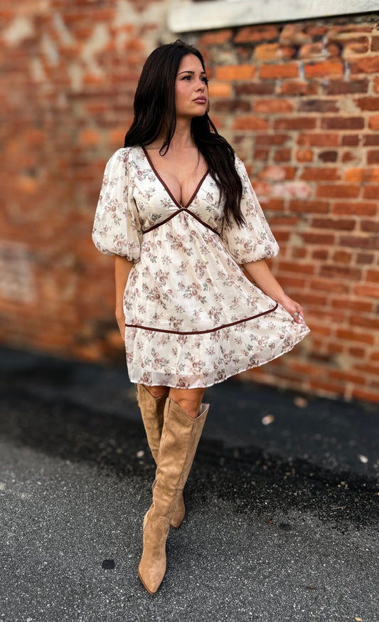 Sold outCream Burgundy Mini Dress